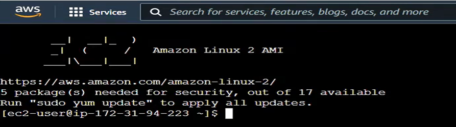 - The below output shows that you have successfully connected to your EC2 instance.