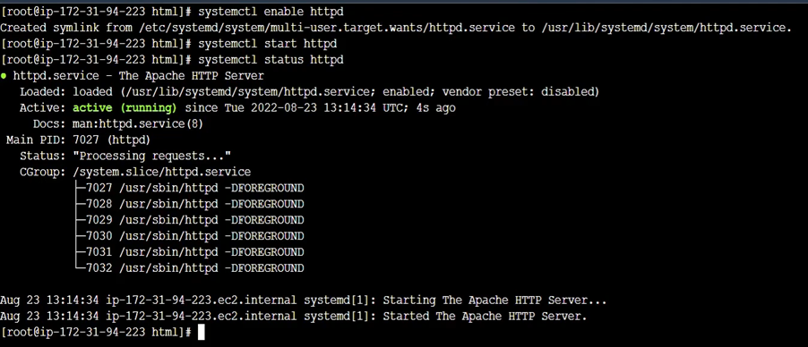 - Now that you have installed the HTTP Server, check the status of the HTTP Server after installation by running the following command: