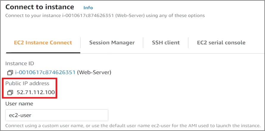 - You have completed all the setups required to host a website. You can copy the Public IP Address of your EC2 instance.